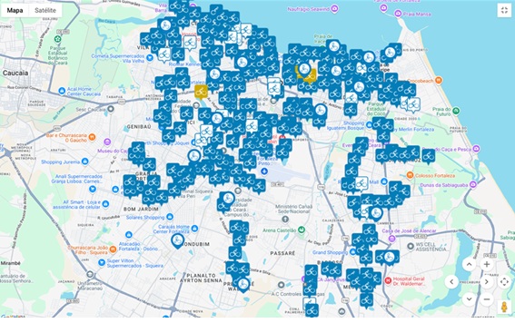 Para facilitar a integração, há estações de bicicletas distribuídas por vários terminais, em bairros como Antônio Bezerra, Lagoa, Conjunto Ceará, Messejana, Siqueira, Papicu e Parangaba.