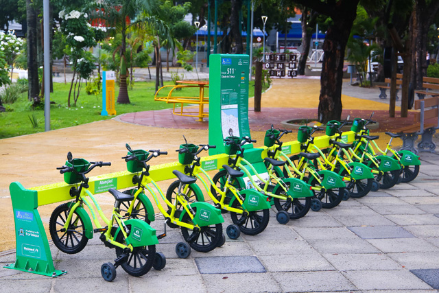 O programa ganhou também uma versão para crianças, com bikes equipadas com rodinhas retráteis e empréstimos que seguem as mesmas regras do sistema disponível para jovens e adultos.